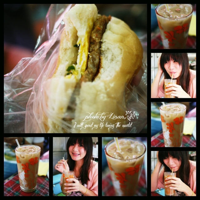 因為要出遊,心情特別的好,連在巷口吃早餐都要拍照紀念一下XD