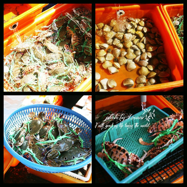 其中路過一家餐廳,外面一桶一桶活跳跳的螃蟹大軍,圍滿搶購的人潮,